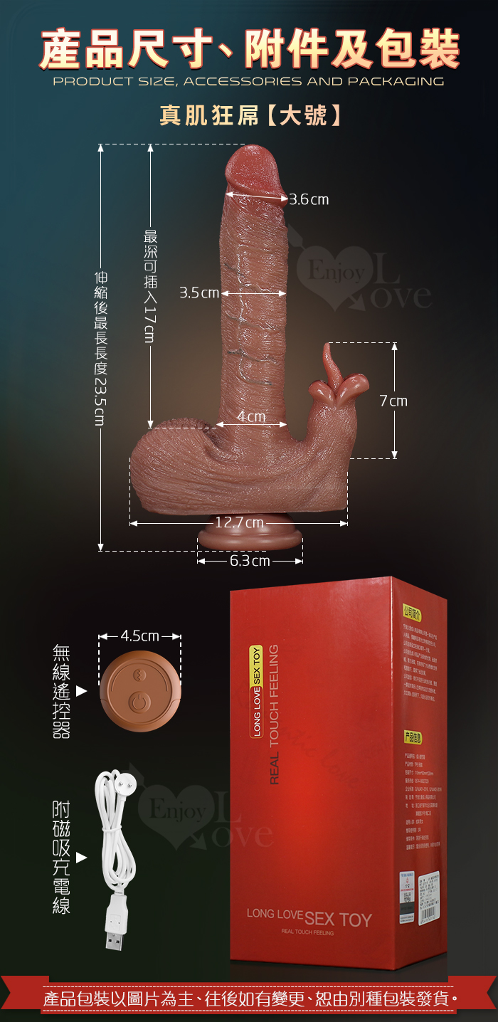 真肌狂屌 ‧ 無線遙控唇槍舌戰 伸縮震動高仿真肉感老二棒 - 大號