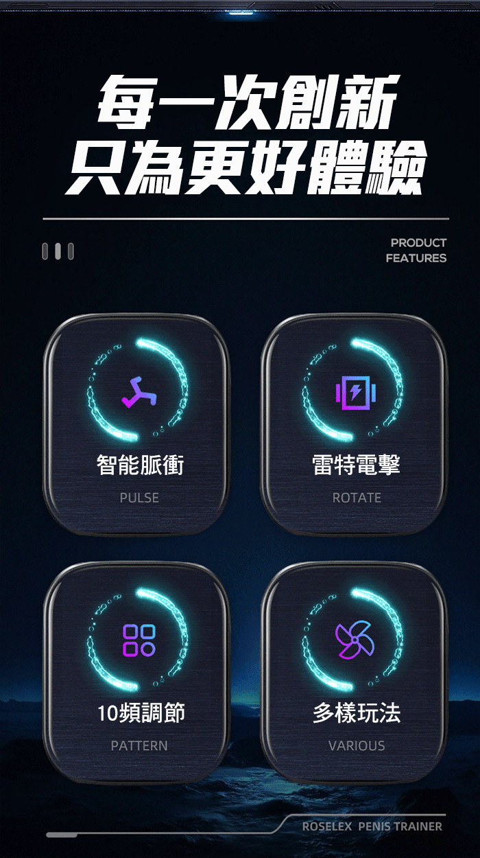 雷特電擊智能脈衝男性陰莖訓練器,智能電擊脈衝,對JJ進行旋轉冠溝 按摩,刺激冠鉤達到高潮;解鎖新玩法,刺激體驗,降低龜頭敏銳度, 高轉速電機,動力強勁,智慧晶片,AI黑科技,讓每一次收縮衝擊都恰 到好處;矽膠材質,滿足你各種強度的訓練後,依然不開裂不變形!