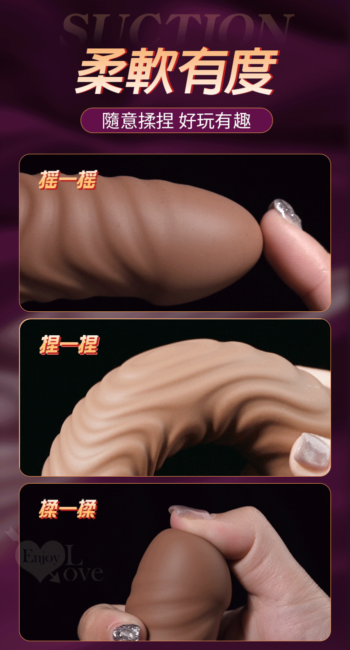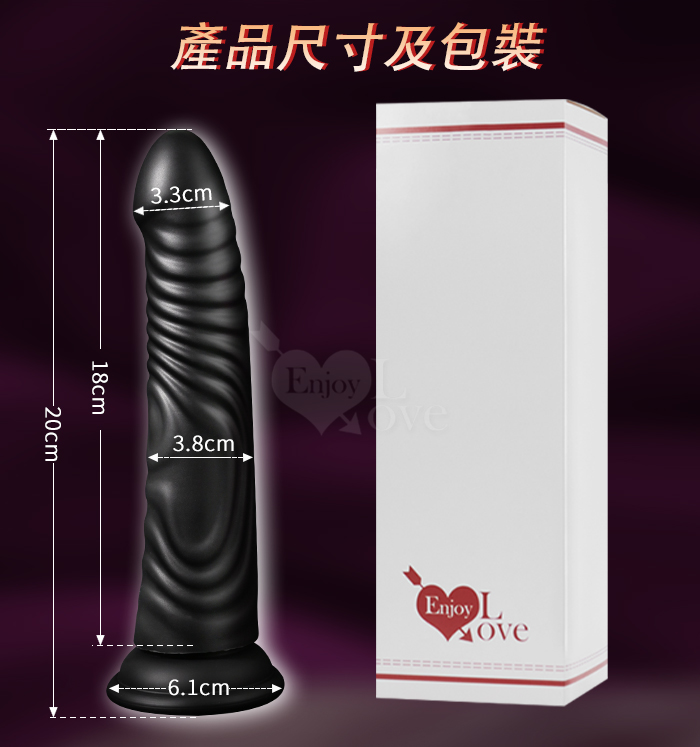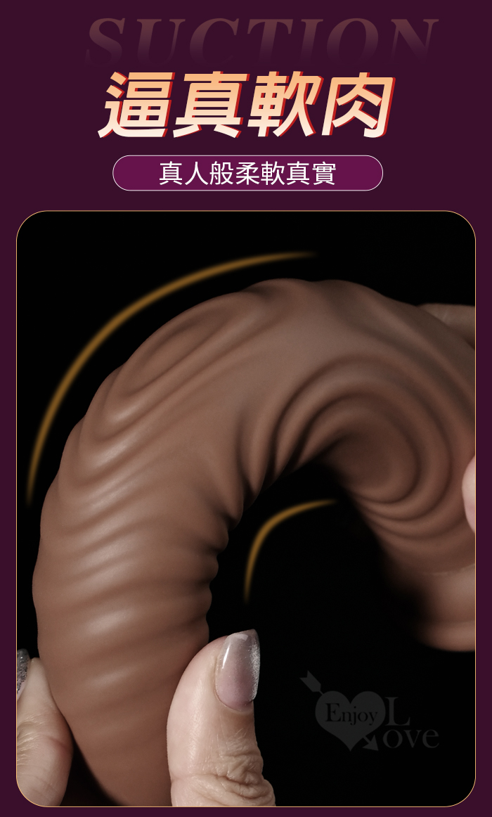 Enjoy Love ‧ 真肉感B 凹凸大環紋刮陰 液態矽膠軟Q肉彈加固吸盤老二棒﹝黝黑﹞任揉任彎 永不變形