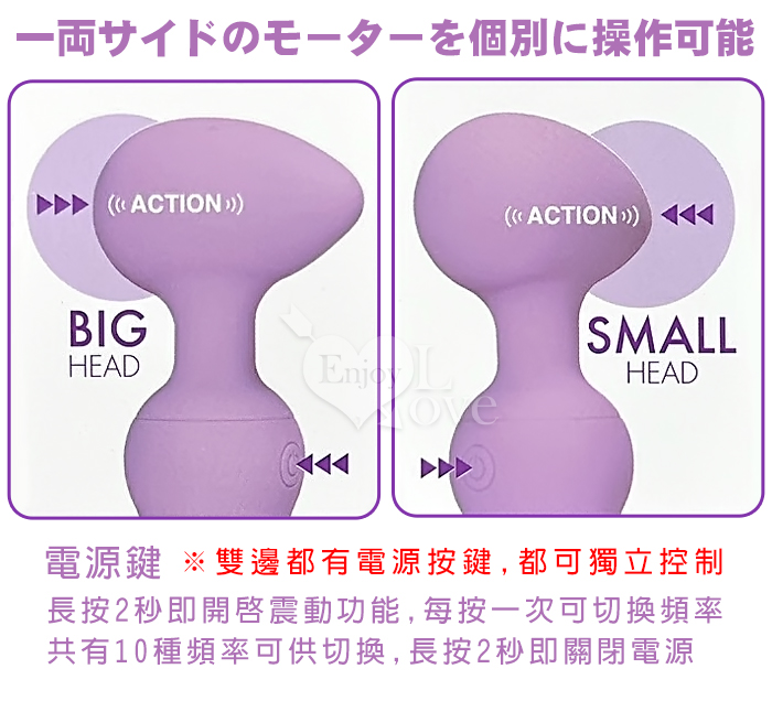 蛋形頭部的左右兩側放置了不同大小的馬達!小頭部讓您享受點刺激,精細的震動馬達實現精準刺激。