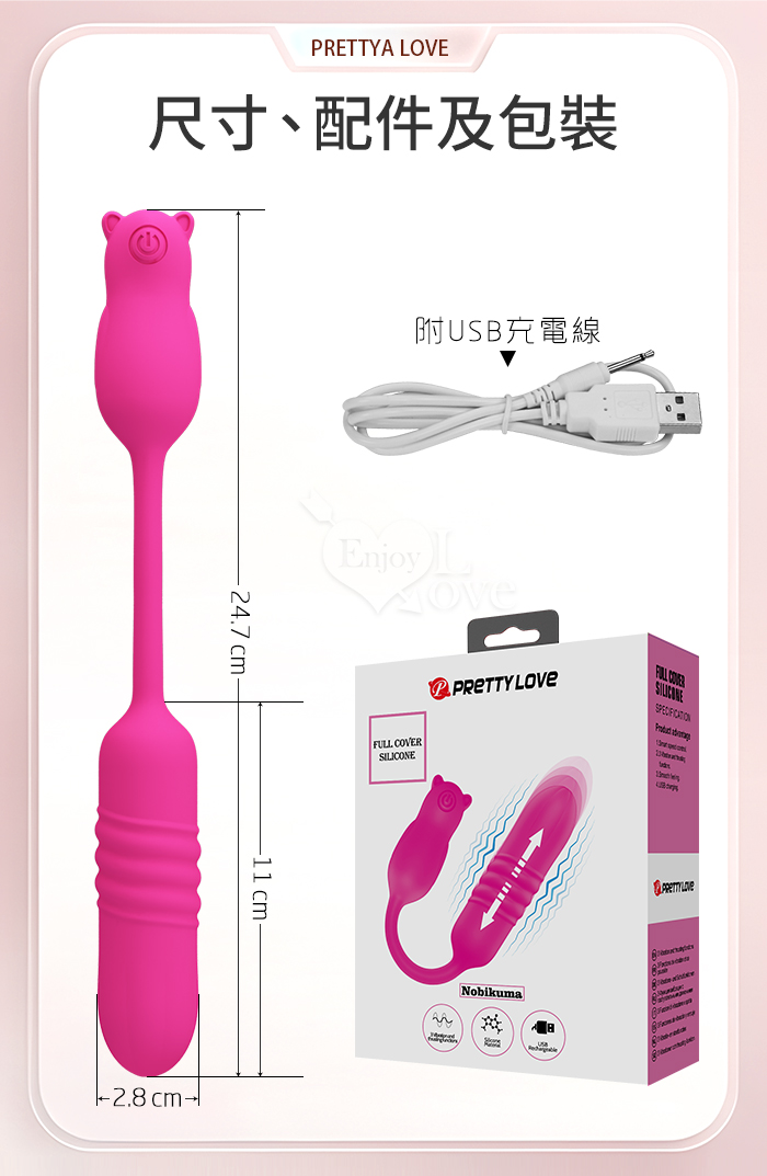 | 派蒂菈 ‧ Gerardo 可愛熊 動感情人小巧按摩棒﹝3頻伸縮+震動+親膚矽膠+USB便捷充電﹞