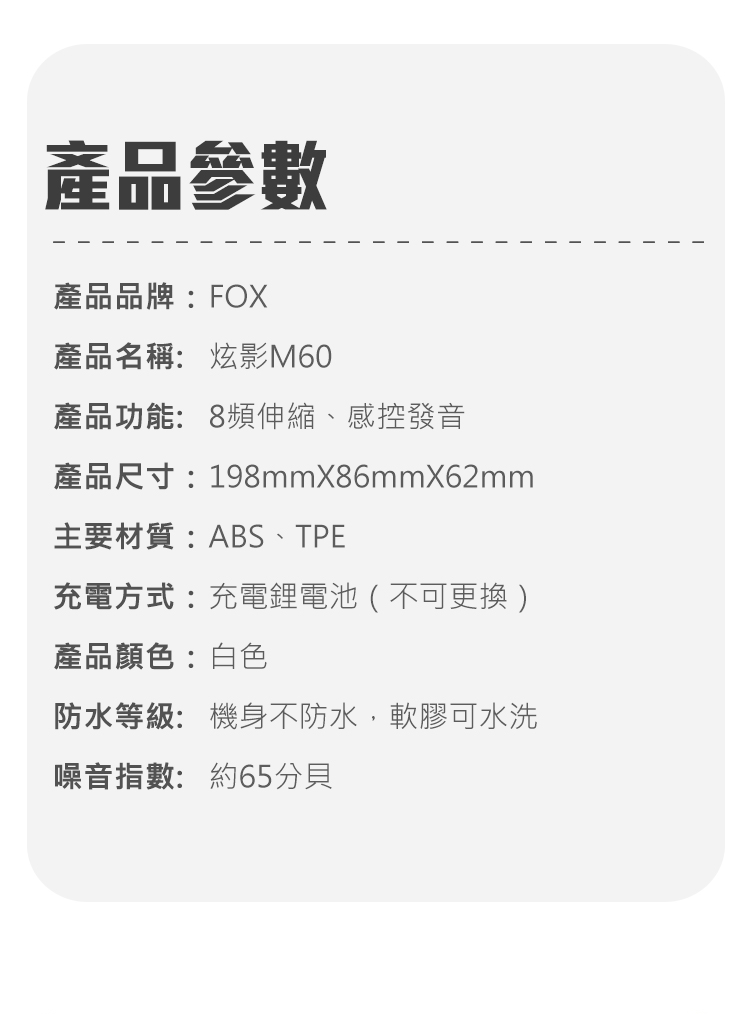 ►您現在的位置:首頁>英國FOX-炫影M60 8段變頻伸縮發聲褶皺包裹電動自慰杯