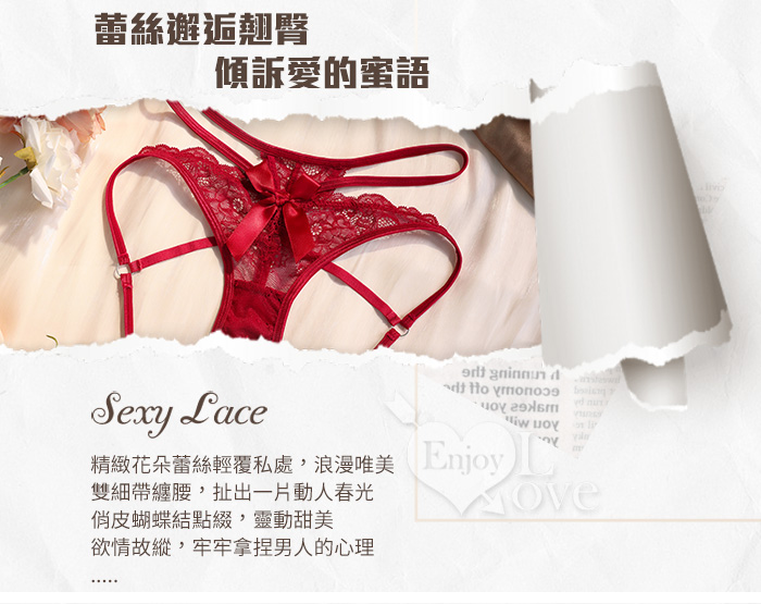 多線束縛透視花蔓蕾絲輕薄丁字褲﹝黑﹞