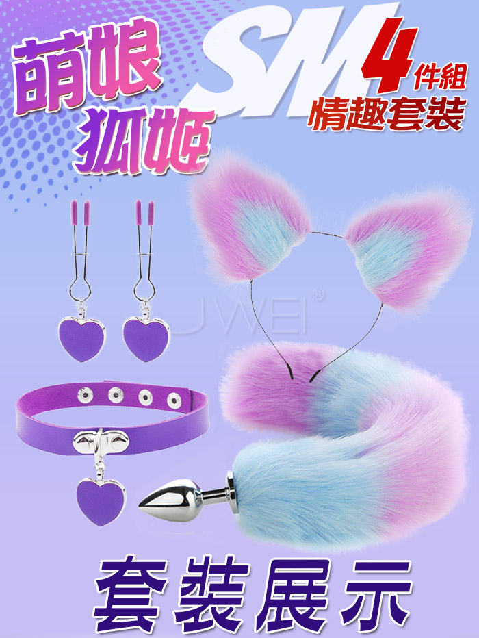 ►您現在的位置:首頁>萌娘狐姬.裝扮遊戲4件套組﹝狐狸尾巴+毛絨髮箍+愛心頸圈+愛心乳夾﹞藍紫