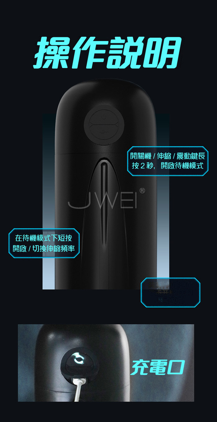 5D多段式刺激 肥潤厚肉,擬真人軟度 雙體感強震,擬真喉深處的震顫 震穿力更強,刺激感直達整根 入口處,直徑約40mm橫條輔助輕鬆滑入愉悅 中部橫紋縮口,包裹式刺激 尾部頂腔,大顆粒刺激摩擦頭部 ●產品尺寸:如圖示 ●材質:TPE+ABS ●淨重:約738土10克 ●充電方式:Type-C充電 ●功能:3檔伸縮+震動