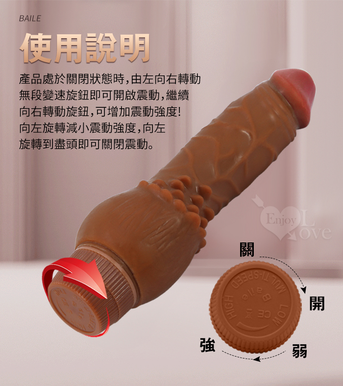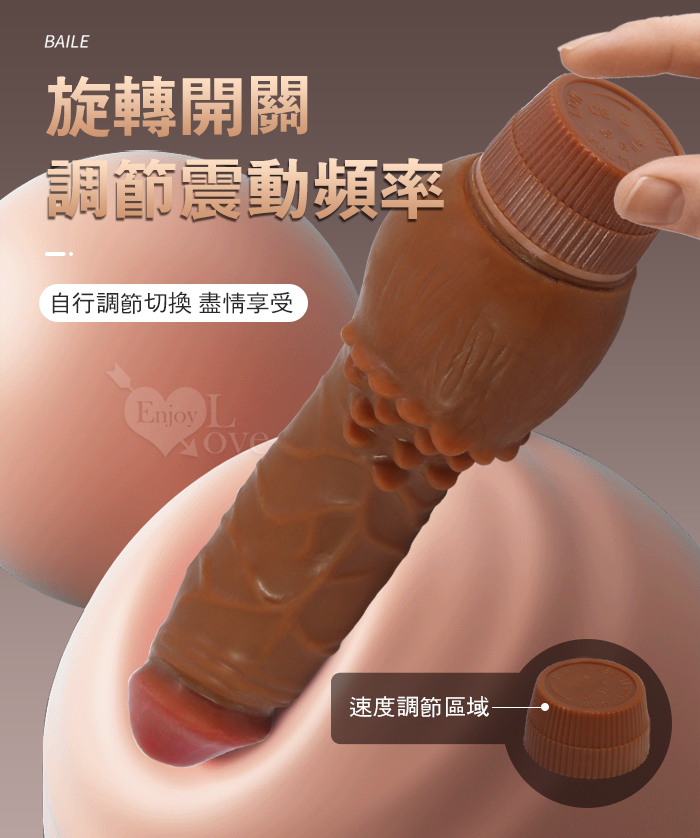 【BAILE】Clark 克拉克 7.6英吋無極微調震動 褐色肌凸點仿真老二按摩棒