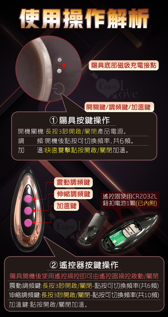 ►您現在的位置:首頁>猛黑肌 ‧ 6X10伸縮衝撞+震動 吸盤逼真肉感陽具-小號﹝無線遙控/智能加溫/USB磁吸充電﹞