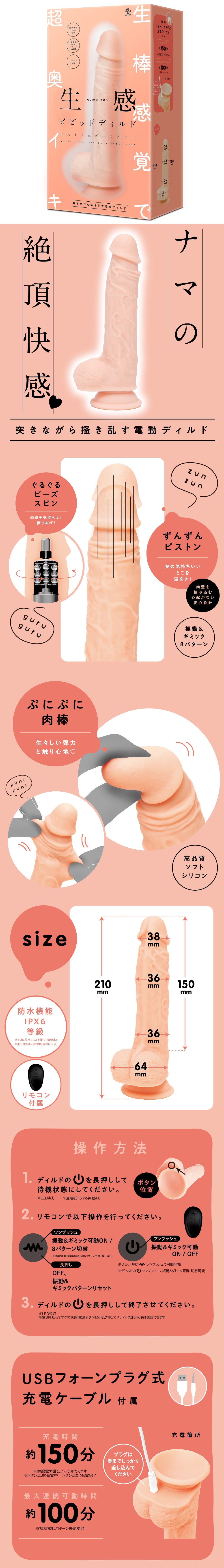 《生感ビビッドディルド -ピストン&ビーズスピン-》