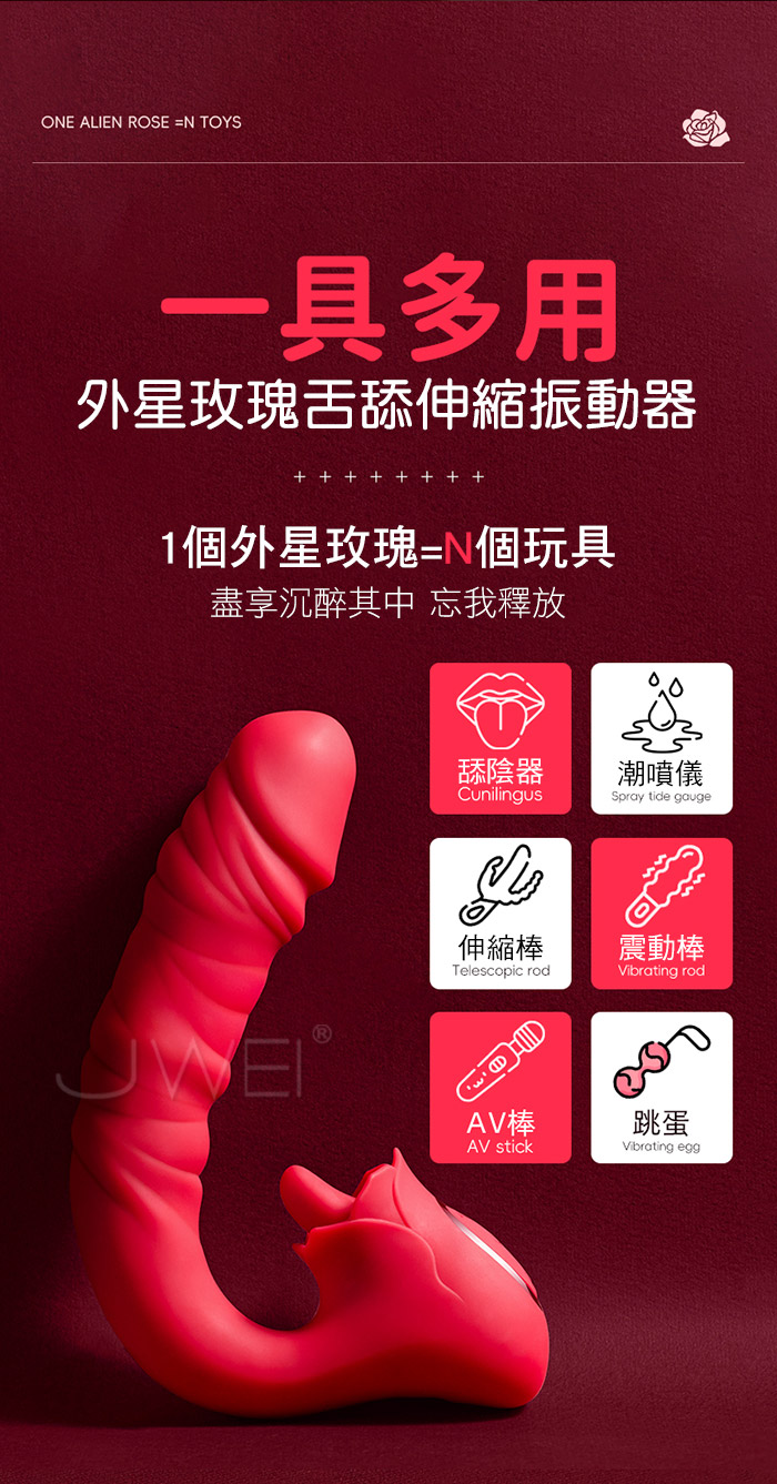 | 外星玫瑰.7頻伸縮強震靈動舌舔 多點刺激按摩棒