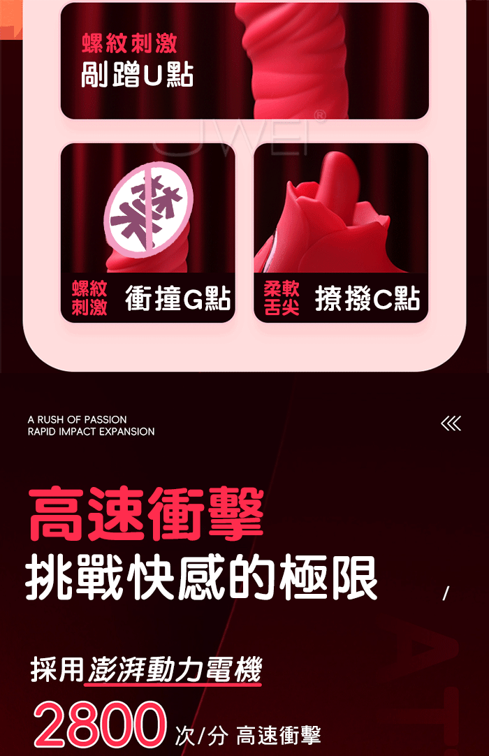 高速衝擊挑戰快感的極限,採用澎湃動力電機,2800次/分 高速衝擊