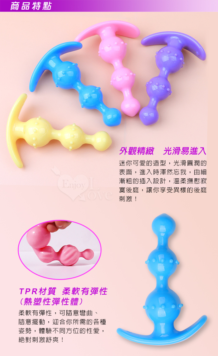 ※ 超級可愛的後庭塞,彈性材質,造型別緻有特色,漸進式由小至大很適合初級玩家使用。