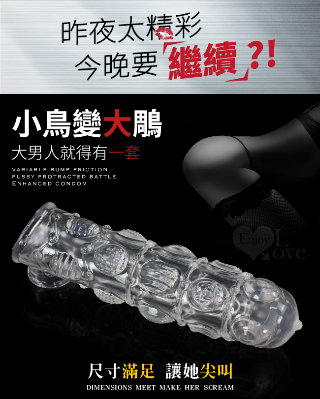 異變 ‧ 造形給力 持久作戰加強陽具套﹝增粗加長刺激﹞透明白