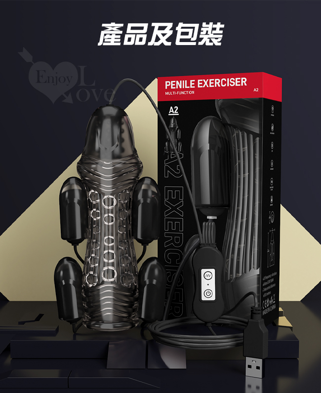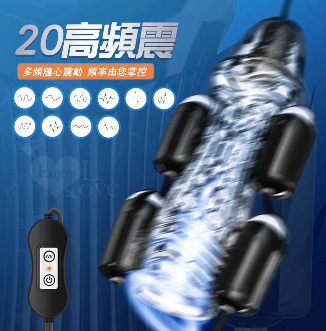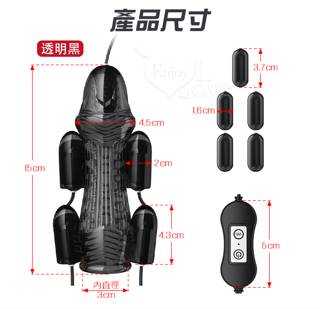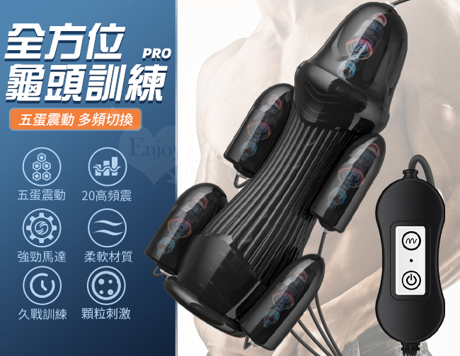 Kuba 久霸 ‧ 全方位龜頭訓練自慰器-陽具陰莖震顫按摩﹝一拖5震蛋+20高頻+顆粒刺激+USB快插即用﹞透明黑