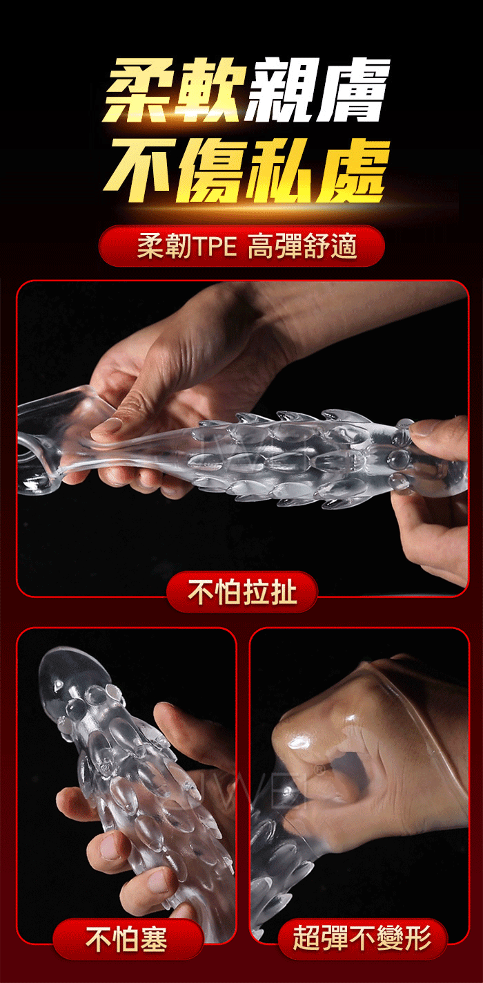 火刺.5D立體肉刺環繞 加長加粗狼牙套-透黑色