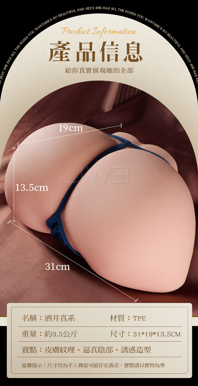■尺寸:大小詳如圖片標示 ■材質:TPE ■重量:約3.5公斤 ■特色:皮膚紋理、逼真陰部