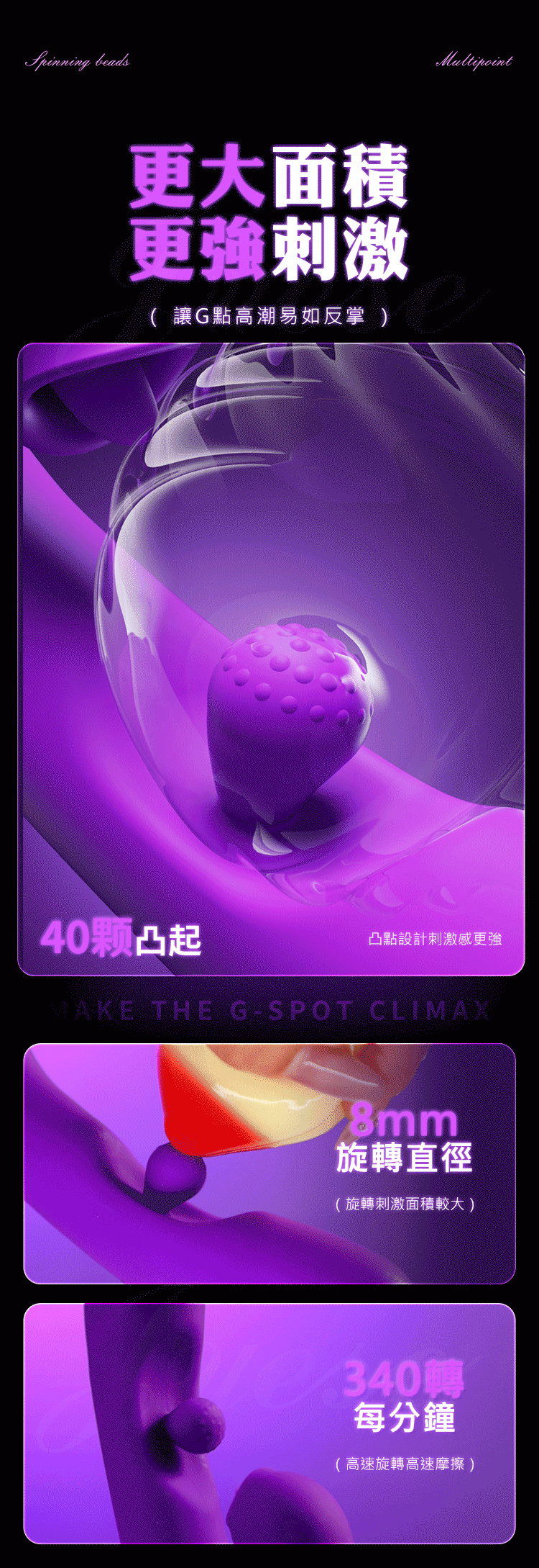 內外夾擊,高潮一浪高過一浪,旋珠按摩刺激G點。