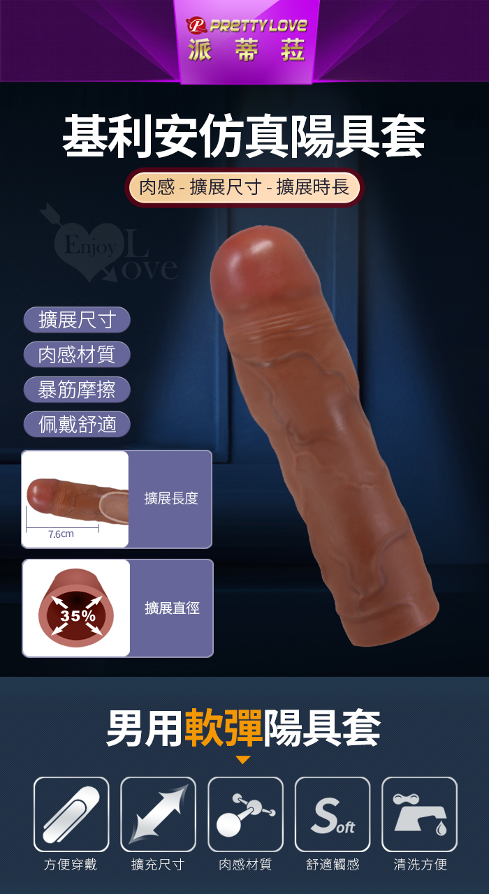 派蒂菈 ‧ KYLIAN 基利安 仿真膚質陽具大龜頭加強套﹝XXL-7.6CM擴展尺寸/爆筋摩擦/肉感材質/配戴舒適﹞