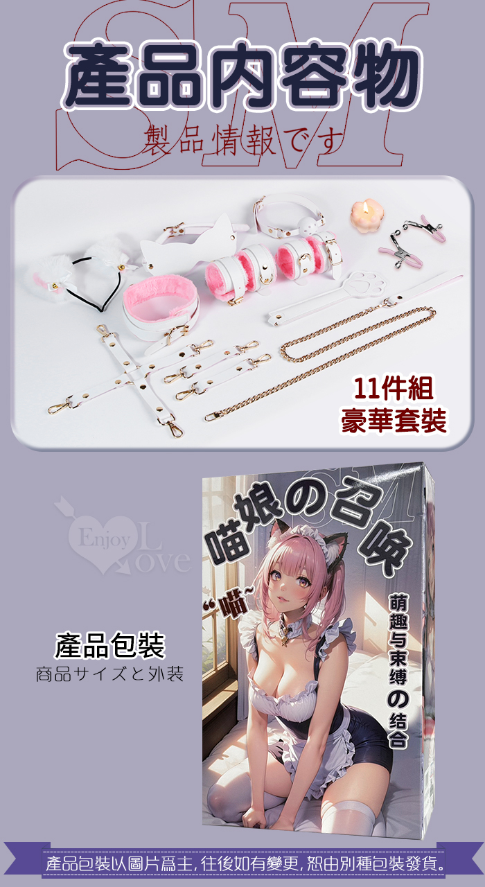 SM遊戲 ‧ 甜系喵語束缚道具 毛絨/皮革11件組豪華套裝 - 綑綁+調教+扮演