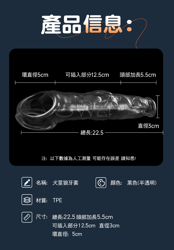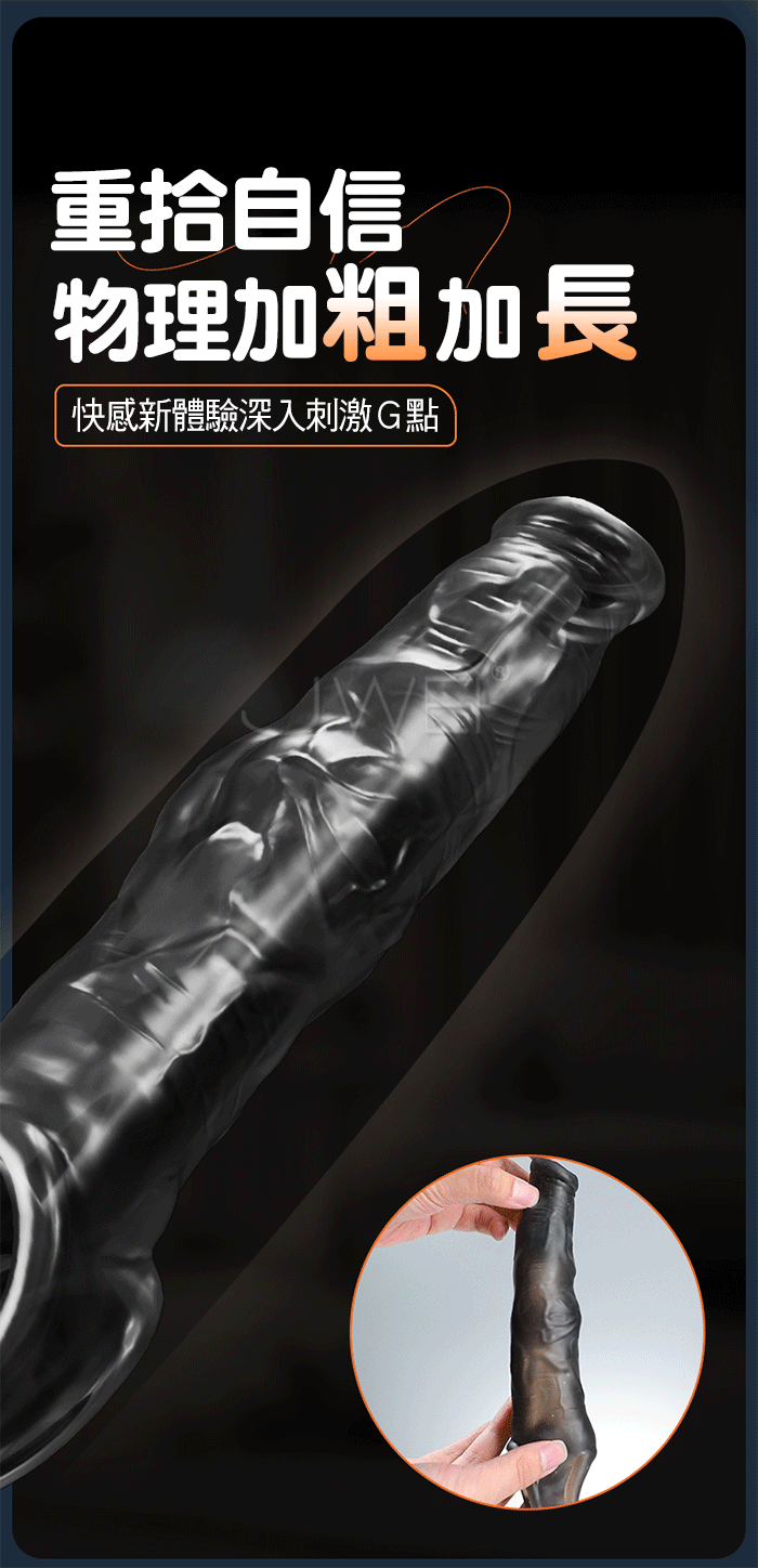 重拾自信 物理加粗加長 延長"武器" 進攻敏感點 仿真青筋 還原真實觸感 鎖莖加時 提升耐力。 ■尺寸:大小詳如圖片標示 ■材質: TPE