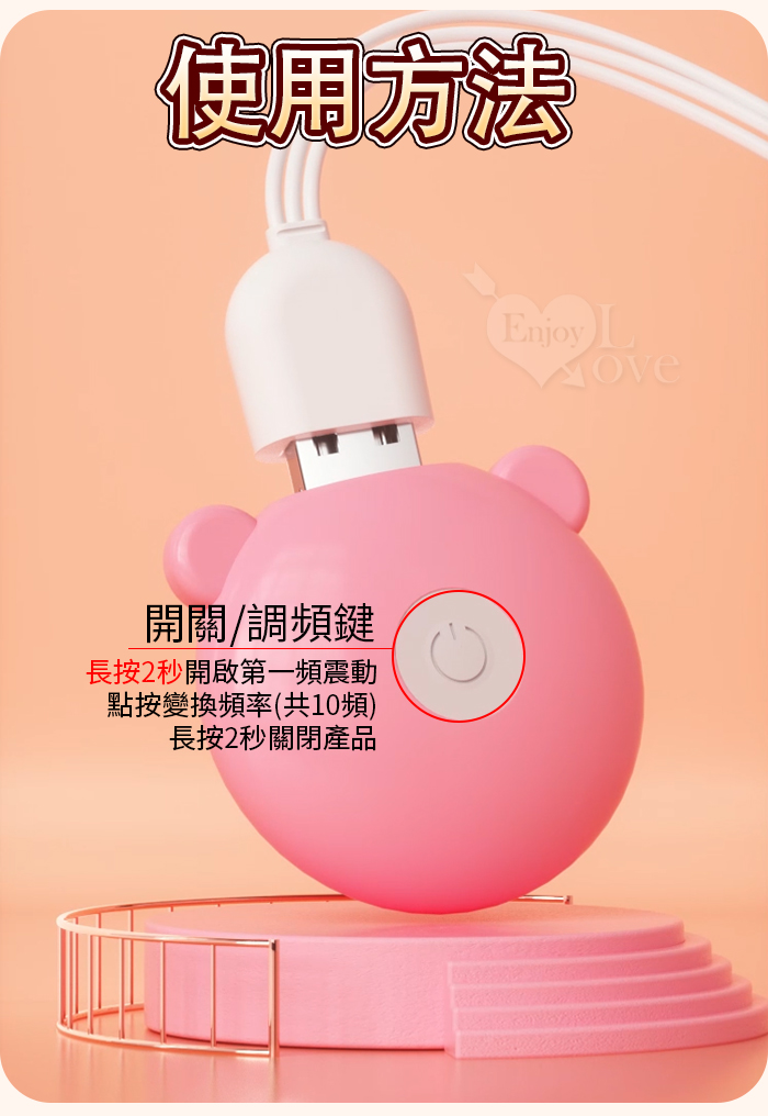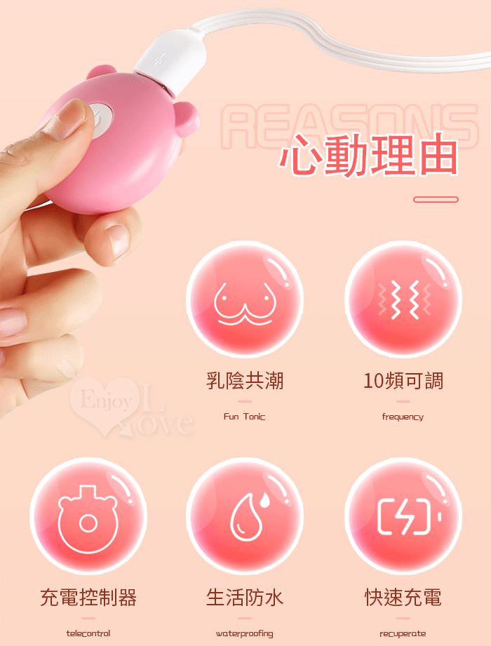 ROSELEX 勞樂斯 ‧ 蜜桃 10頻震動乳陰三點同潮按摩器﹝上下齊攻/USB充電控制器﹞