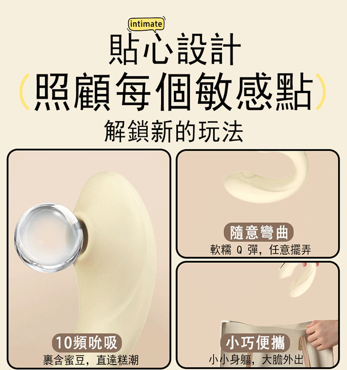 誘魅UNIMAT ‧ Summer 夏 U型10X10X10頻調控~拍打吮吸震動三重體驗按摩器-米黄