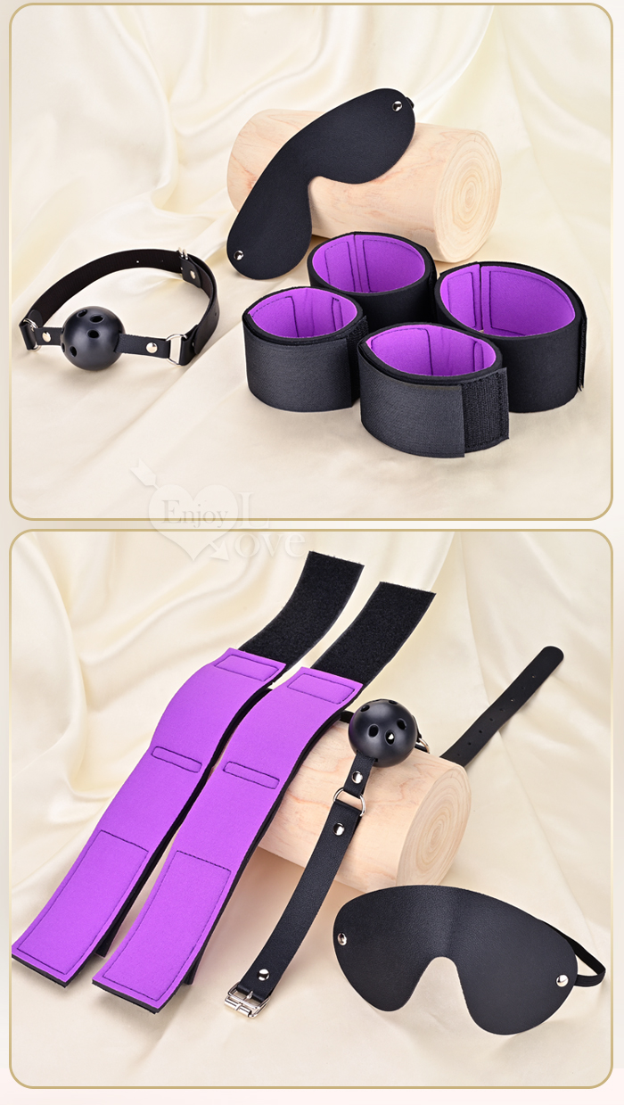 ►您現在的位置:首頁>暗夜囚愛組 ‧ 皮革眼罩+失語口塞+手腳束缚銬 禁錮感知三件套 SM