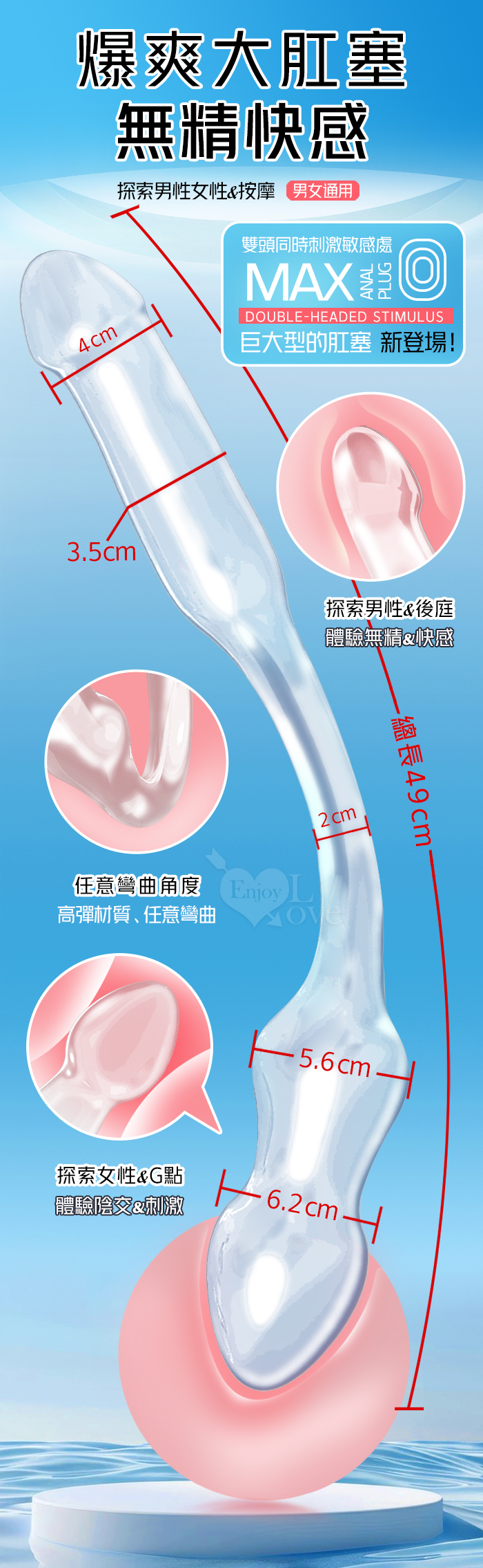 | 取悅 ‧ MAX極樂!XXXL巨大型雙頭水晶按摩棒-前陰後庭/男女皆適用﹝透明色﹞
