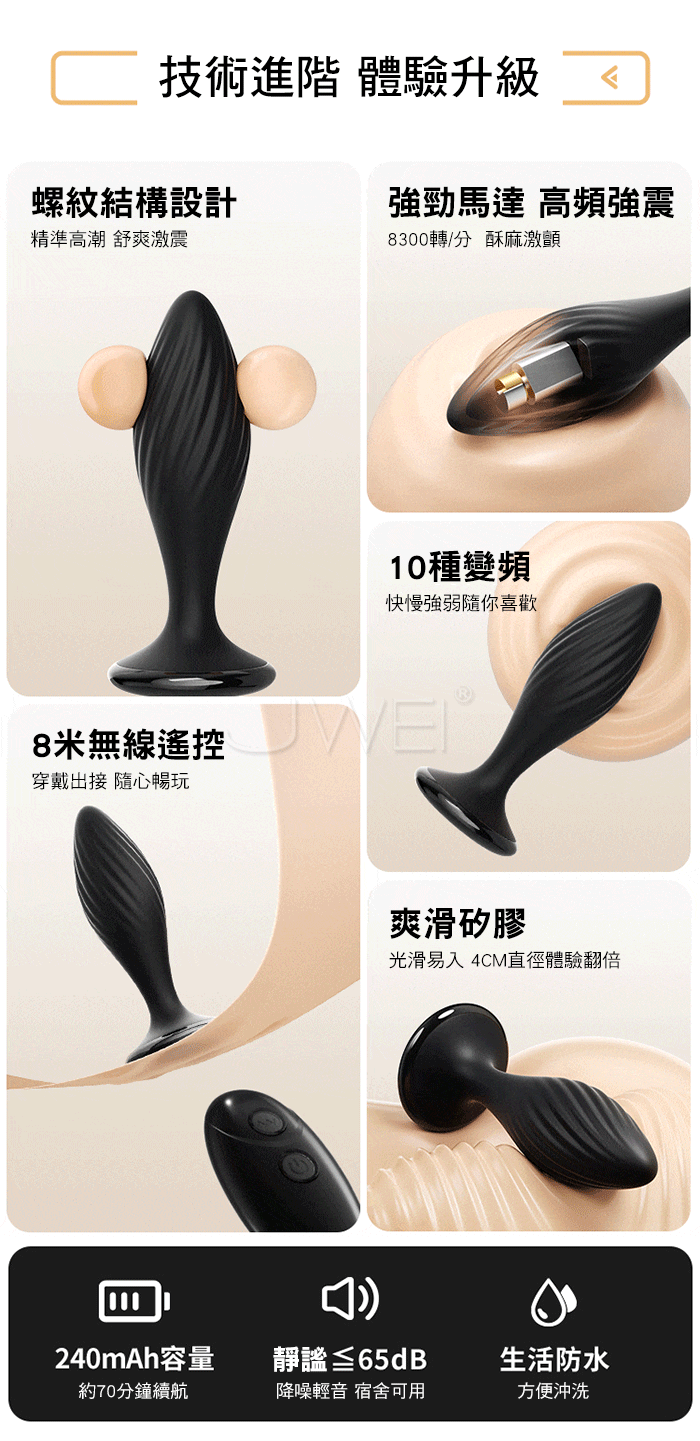 探索後庭 陰肛兩用,無線·黑旋風肛塞“智能肛塞” 8米遙控快樂不斷檔,無線遙控,外出調情利器 10種變頻強震酥麻刺激加倍,快慢隨心 螺紋結構設計,激爽摩擦 精準高潮 ■尺寸:大小詳如圖片標示 ■材質:矽膠+ABS ■功能:10頻震動+遙控