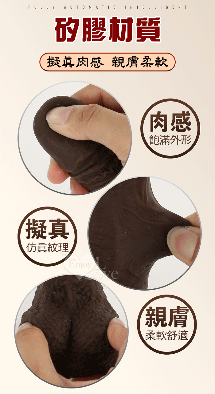 Enjoy Love ‧ 黑金剛 5x10頻伸縮蠕震動逼真肉感加溫吸盤老二棒﹝無線遙控/兩種操控模式﹞