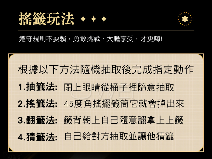►您現在的位置:首頁>抽籤大冒險.前戲必備甜蜜任務互動調情竹製搖籤