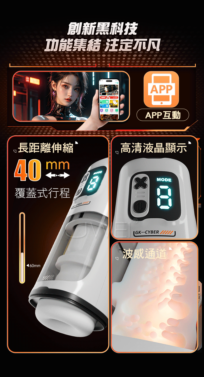 賽博引力飛機杯,40MM長距伸縮,創新黑科技,功能集結注定不凡! 不看小電影,也能玩!開關/10頻震動 伸縮10頻,自動夾吸 收縮包裹從頭擼到根~ 强勁鍛錬 提升戰力,鍛錬敏感度 提升海綿體,漩渦虹吸肌是,每一秒都不一樣 產品規格 ■材質: 矽膠+ABS ■規格: 詳如圖片標示 ■功能: 9頻伸縮、APP智控