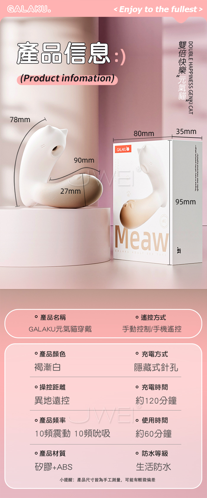 | GALAKU.元氣貓 10頻吮吸+10頻震擊G點 APP遠距遙控萌趣穿戴跳蛋