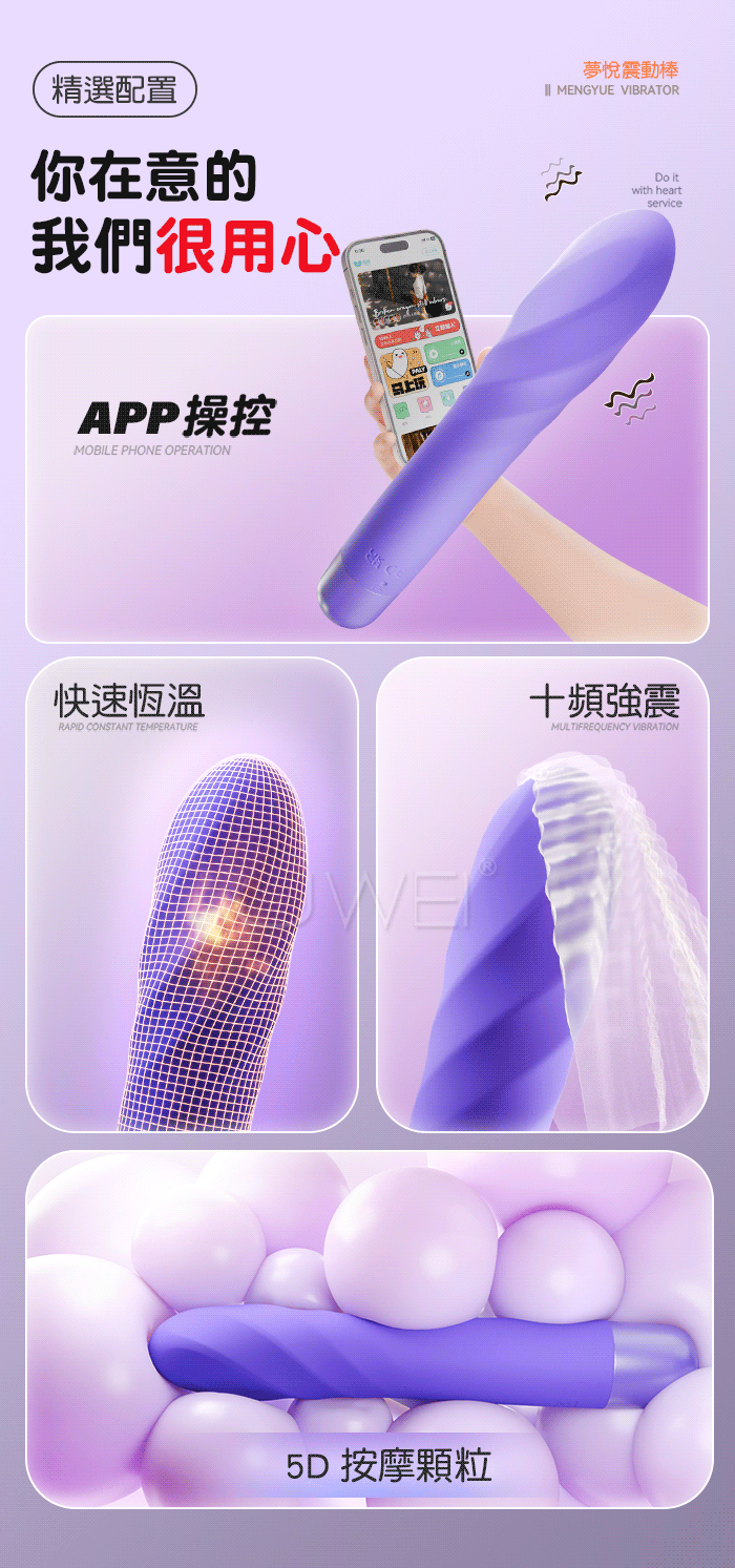 深入花芯,入體直接高潮,舒適刺激全都要!幾下震出尿! 360度螺紋棒身,恰到好處的摩擦,瘋狂剮蹭 仿真體暖,愛意升溫~暖暖得更舒服! APP互動,來自遠方的驚喜,遠端遙控 產品規格 ■材質: 矽膠+ABS ■規格: 詳如圖片標示 ■功能: 10頻震動、加溫、APP智控