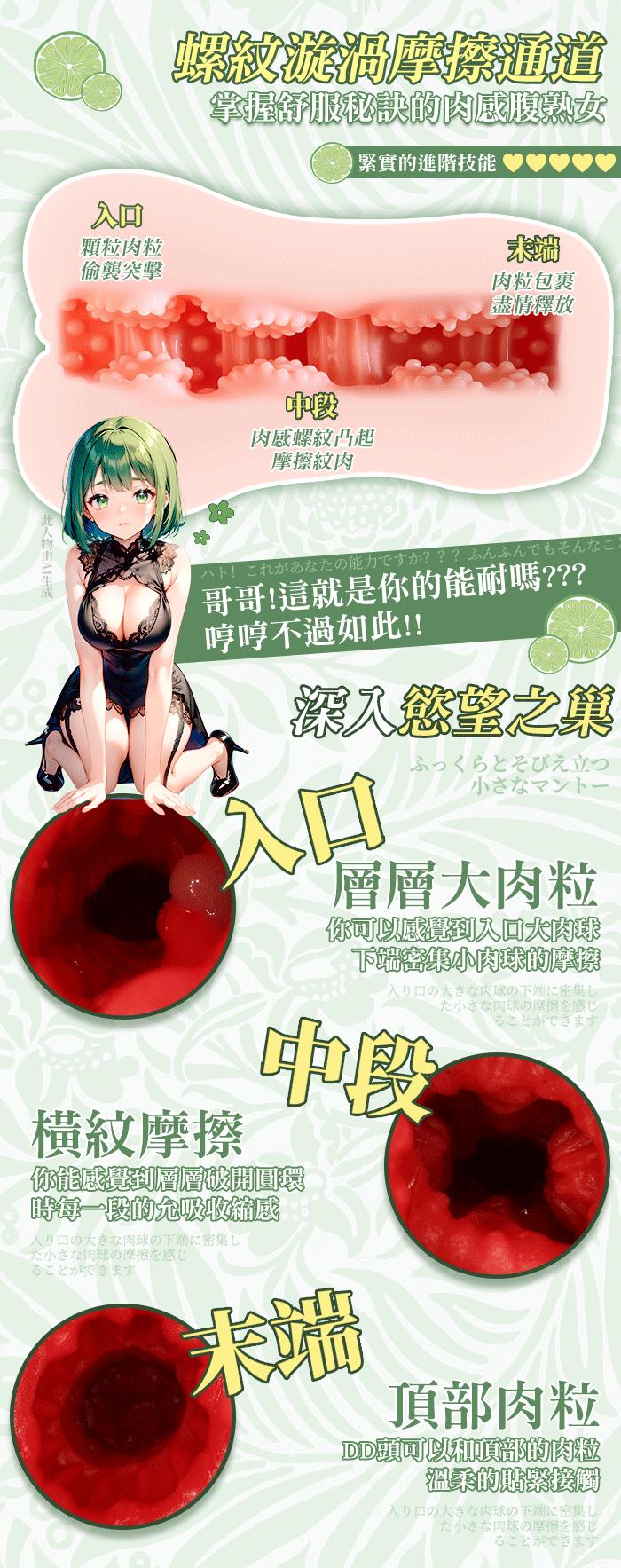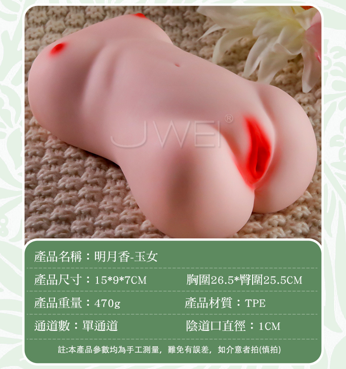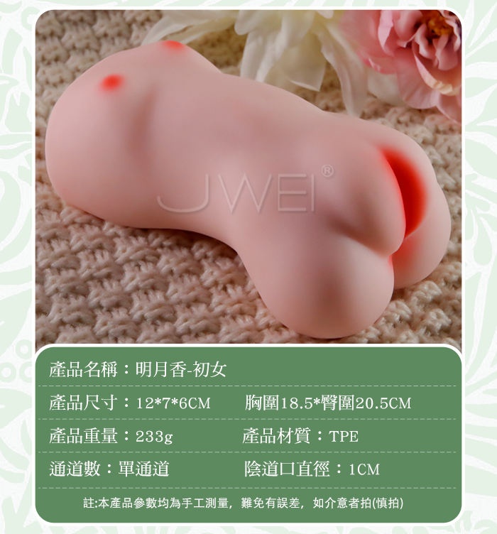 “享受二次元的絲滑愉悦”擬真模特兒“明月香姐妹” 作為半身名器的明月香有著特別之處: 1.飽滿的小饅頭私處 2.Q彈肉厚的杯體 3.桃花深處的大顆粒 每一次的觸動都是身心的滿足~~ 產品規格 ■尺寸:大小詳如圖片標示 ■材質:TPE ■重量:約233g