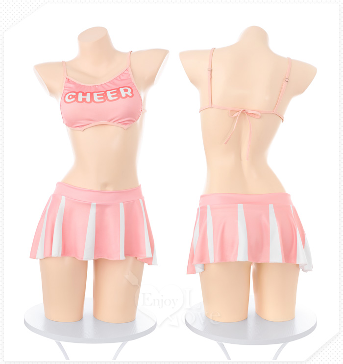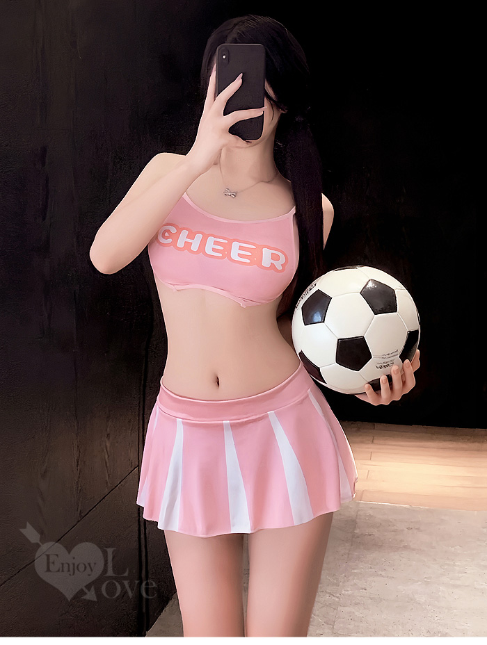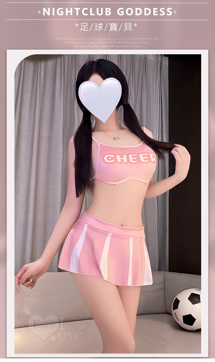 啦啦隊足球寶貝套裝|後背鏤空印花短上衣 × 撞色短裙 運動風三件組