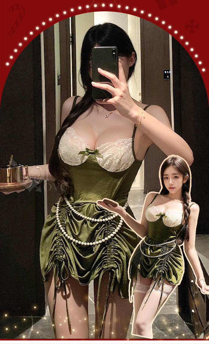 聖誕魅力/新年狂歡派對!露背綁帶 × 珠鍊纖腰 × 蜜臀抽繩|絲絨連身裙二件組﹝紅﹞