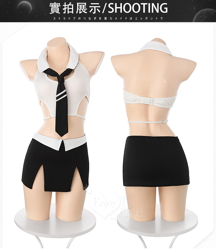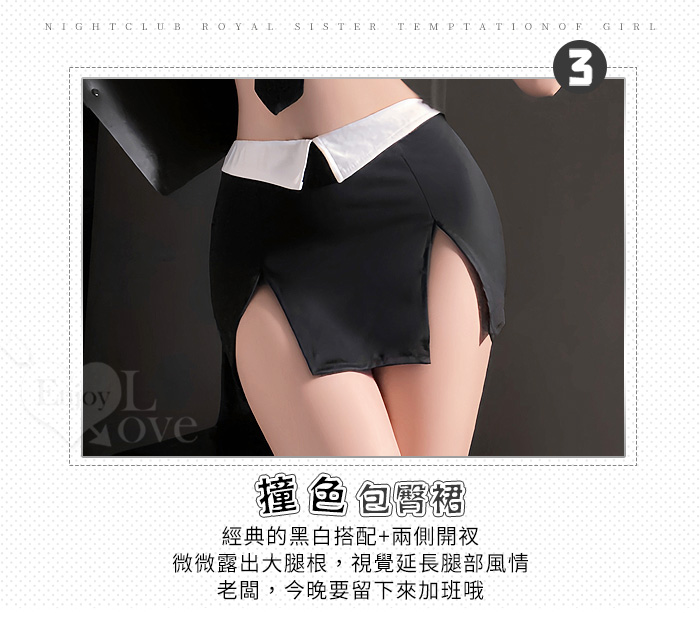 ►您現在的位置:首頁>秘書角色扮演服!細帶露腰短上衣撞色雙開衩包臀裙四件式套裝