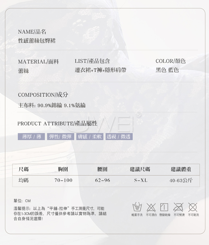 ■內容物:連衣裙+T褲+隱形肩帶