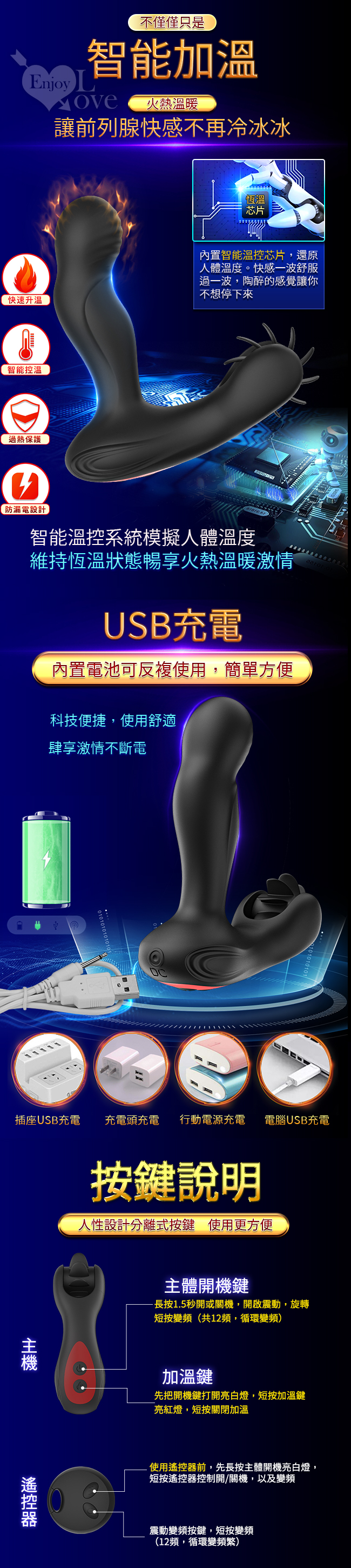 | 滿4000元贈品 經典多功能前列腺按摩棒 ‧ 12頻震動+軟舌旋轉/無線遙控/智能加溫/USB充電【特別提供保固6個月】